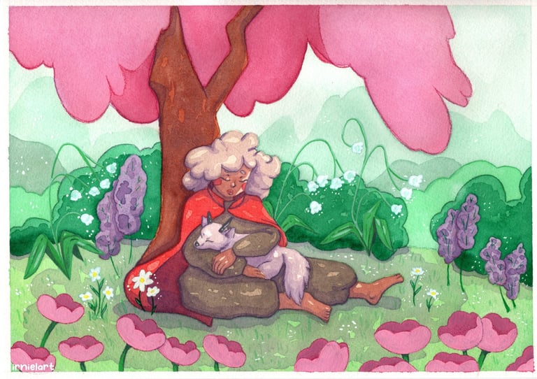 Me llamo Cristina, conocida en redes como Irnielart. Soy artista freelance y mi obra abarca desde acuarelas calmadas y muy detalladas, hasta personajes simpáticos y graciosos creados en diferentes medios.